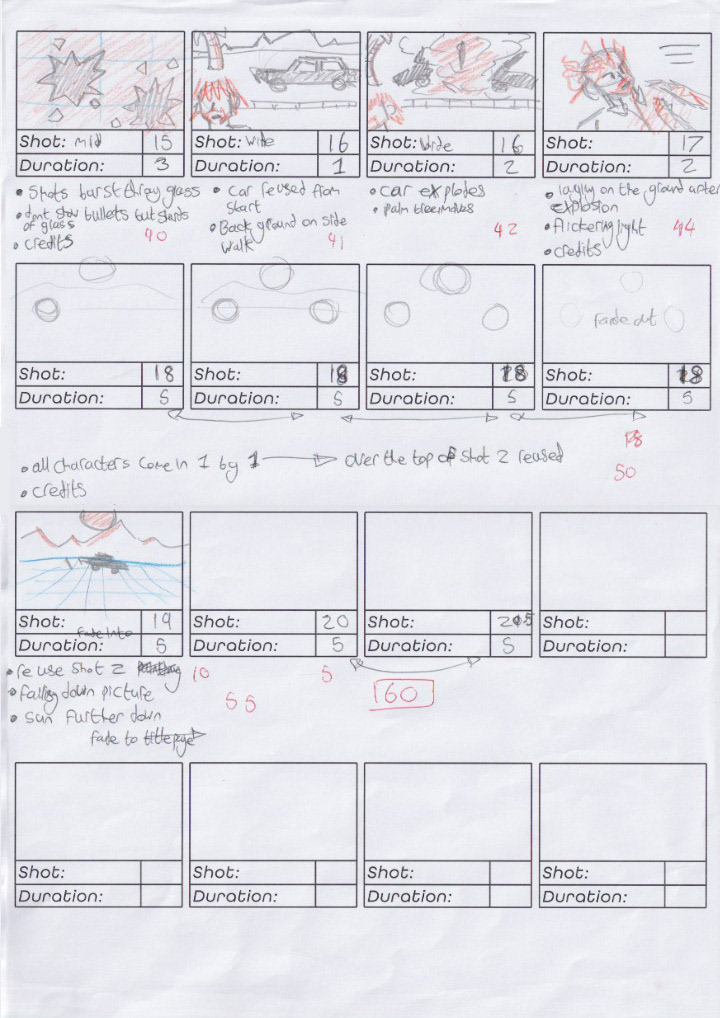 Practice made me accustomed to jotting down thoughts and ideas onto storyboards. This helped understand pieces of the animation such as the duration of each shot or where titles might go.